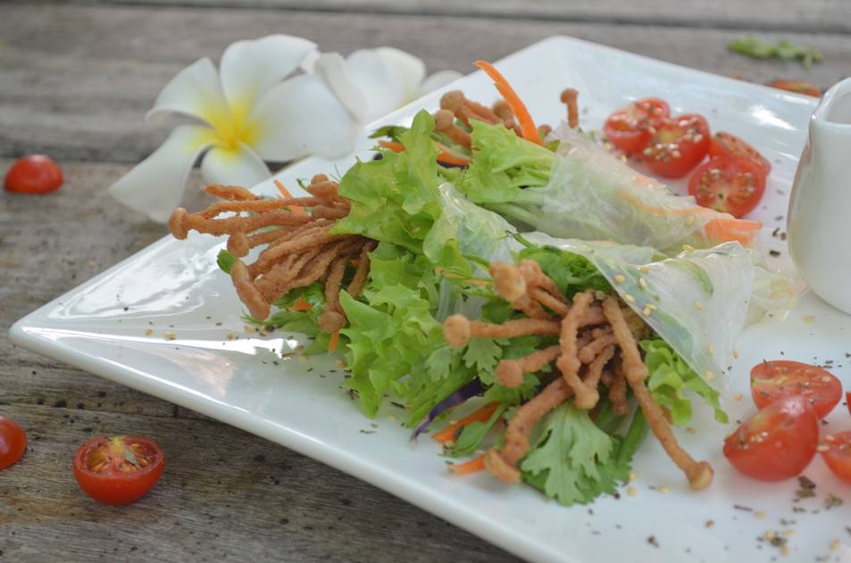 Crispy Enoki Mushroom Hand-Roll Maki Salad